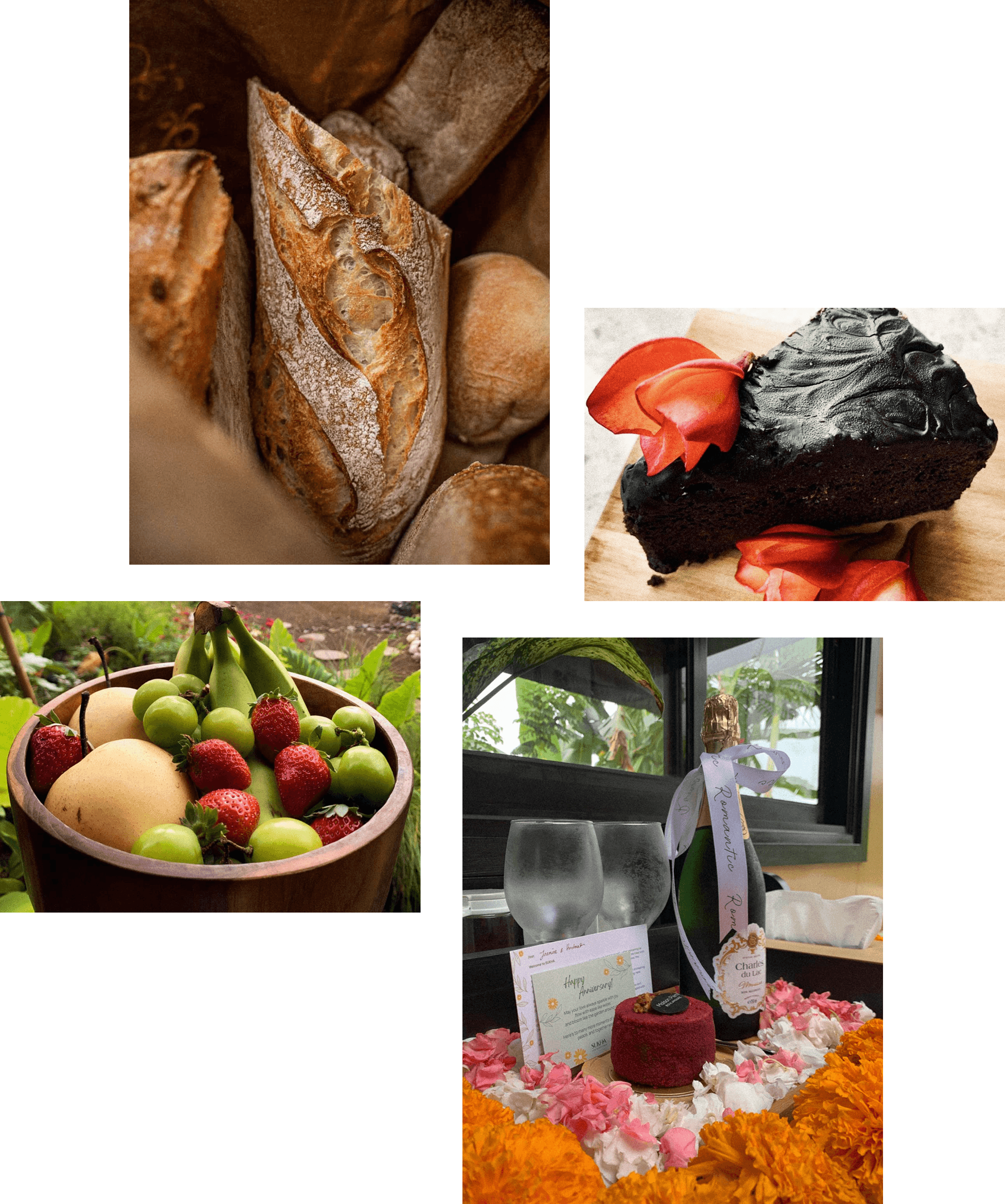 Elevate meals with Bali’s organic shops — fruits, bread, jams, plant-based milk, meats, cheeses, sweets, and vegetables beyond our garden, delivered to your door from trusted suppliers like Rosalie Cheese, Satvica Boga, Bali Direct, and Bali Greens & Goods. 100K delivery fee. Orders require 48 hours’ notice.