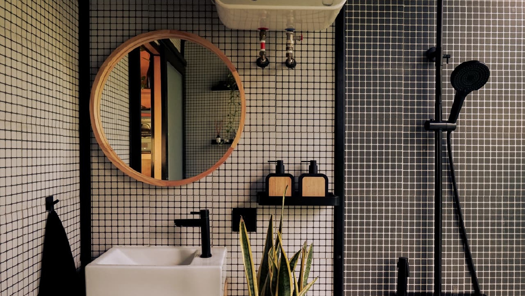 A clean, spacious bathroom with a warm shower and simple comforts, designed to support slow, intentional living at SUKHA. Everything is thoughtfully arranged to make daily rituals feel effortless.
